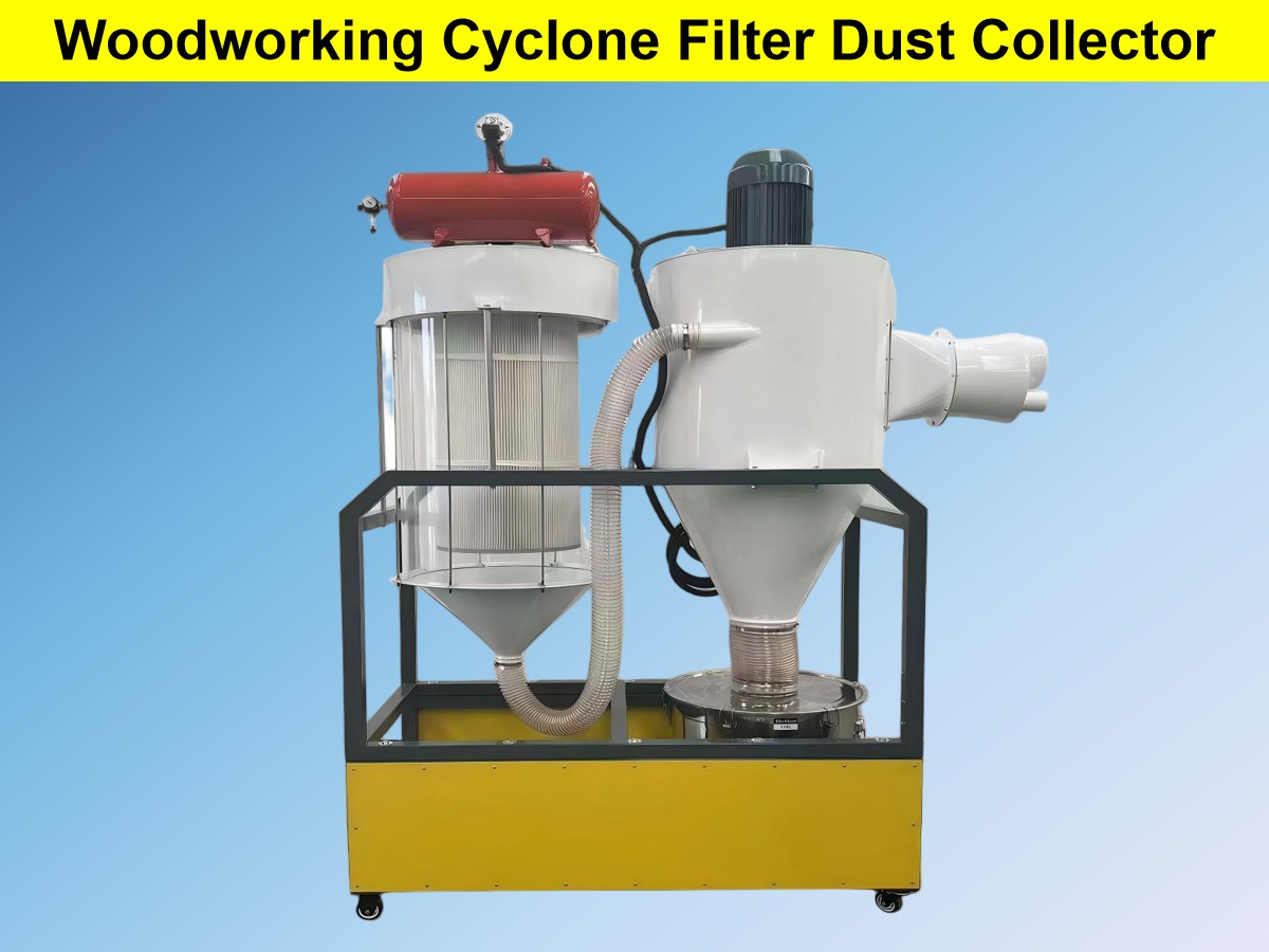 Os coletores de pó para carpintaria do tipo filtro ciclone são uma combinação de separação de ciclone e filtragem de cartucho de filtro. Eles combinam as vantagens dos coletores de pó tipo ciclone no manuseio de poeira grossa de alta concentração com as características de alta precisão dos coletores de pó de cartucho de filtro na filtragem de poeira fina. Projetados especificamente para a ampla distribuição de tamanho de partículas de serragem e pó de madeira em oficinas de marcenaria, sua eficiência de remoção de poeira é muito maior do que a de equipamentos de unidade única.